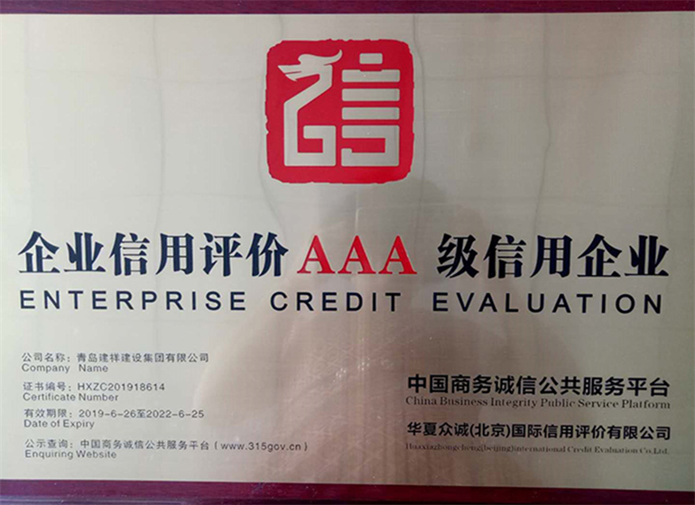 企業(yè)信用評(píng)價(jià)AAA級(jí)信用企業(yè)