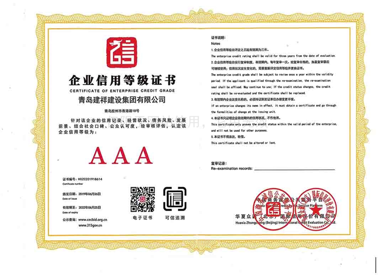 企業(yè)資信等級(jí)證書(shū)