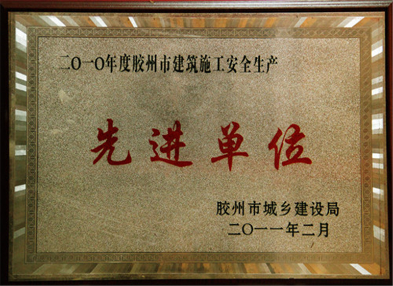 2010年膠州市建筑施工安全生產(chǎn)先進(jìn)單位