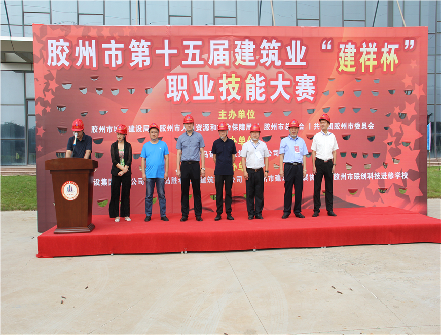 膠州市第十五屆建筑業(yè)“建祥杯”職業(yè)技能大賽于8月24日在青島建祥建設集團舉行,主辦單位有膠州市城鄉(xiāng)建設局,膠州市人力資源和社會保障局,膠州市總工會和共青團膠州市委員會。協(xié)辦單位有青島勝利兄弟建筑有限公司,膠州市建筑業(yè)發(fā)展協(xié)會和膠州市聯(lián)創(chuàng)科技進修學校。承辦單位為青島建祥建設集團有限公司。大賽共分為管工,鋼筋工和裝飾裝修工三個賽區(qū)。膠州市人社局,建筑局,總工會等有關(guān)單位負責人和建祥集團領(lǐng)導均出席本次大會開幕式。