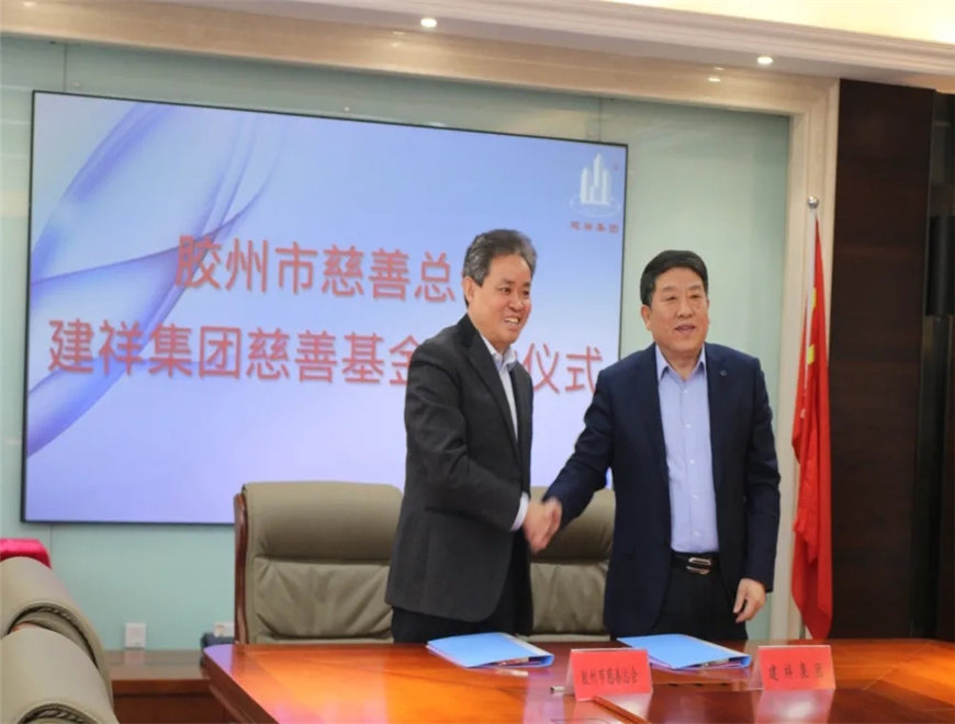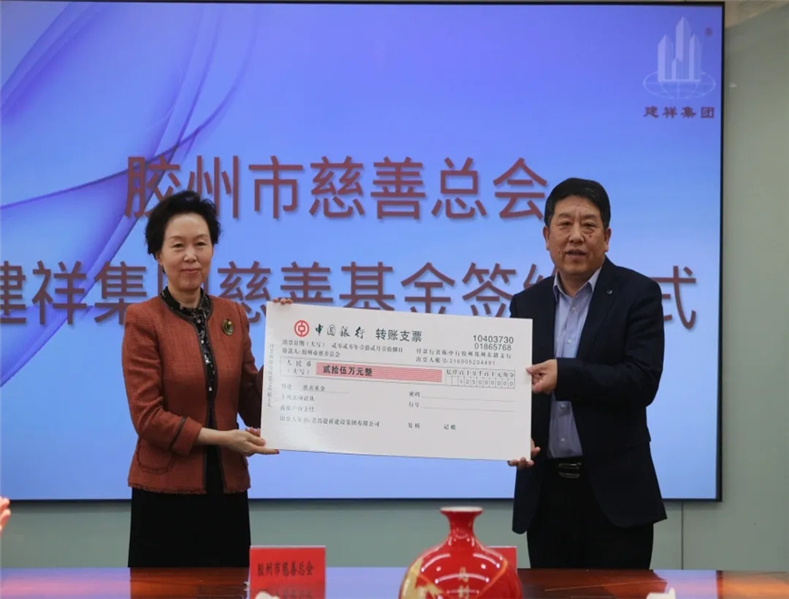 儀式上,青島建祥建設(shè)集團(tuán)與市慈善總會簽署了慈善基金協(xié)議書,遞交了75萬元的冠名慈善基金,市慈善總會向青島建祥建設(shè)集團(tuán)頒發(fā)了慈善感謝牌。