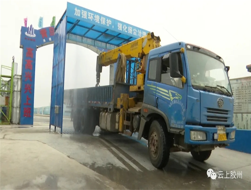 同時,在車輛進出的大門還配置了洗輪機和廢水沉淀池,現(xiàn)場的裸土區(qū)域全部用綠色密目網(wǎng)覆蓋。在工地大門一側,先進的監(jiān)測系統(tǒng)實時顯示PM2.5、噪聲、溫濕度等數(shù)值,噪聲比限值低了20個分貝,PM2.5可吸入顆粒物達到優(yōu)良標準,實現(xiàn)了“六個一百”全覆蓋。