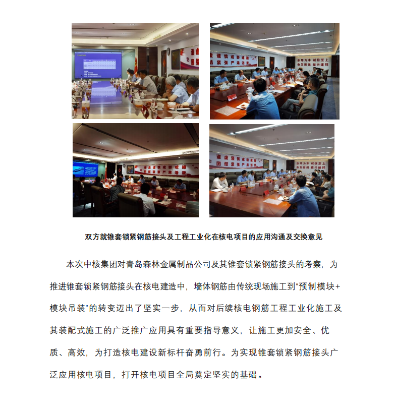 中核集團(tuán)專家考察團(tuán)在建祥集團(tuán)會(huì)議室就錐套鎖緊鋼筋接頭及鋼筋工程工